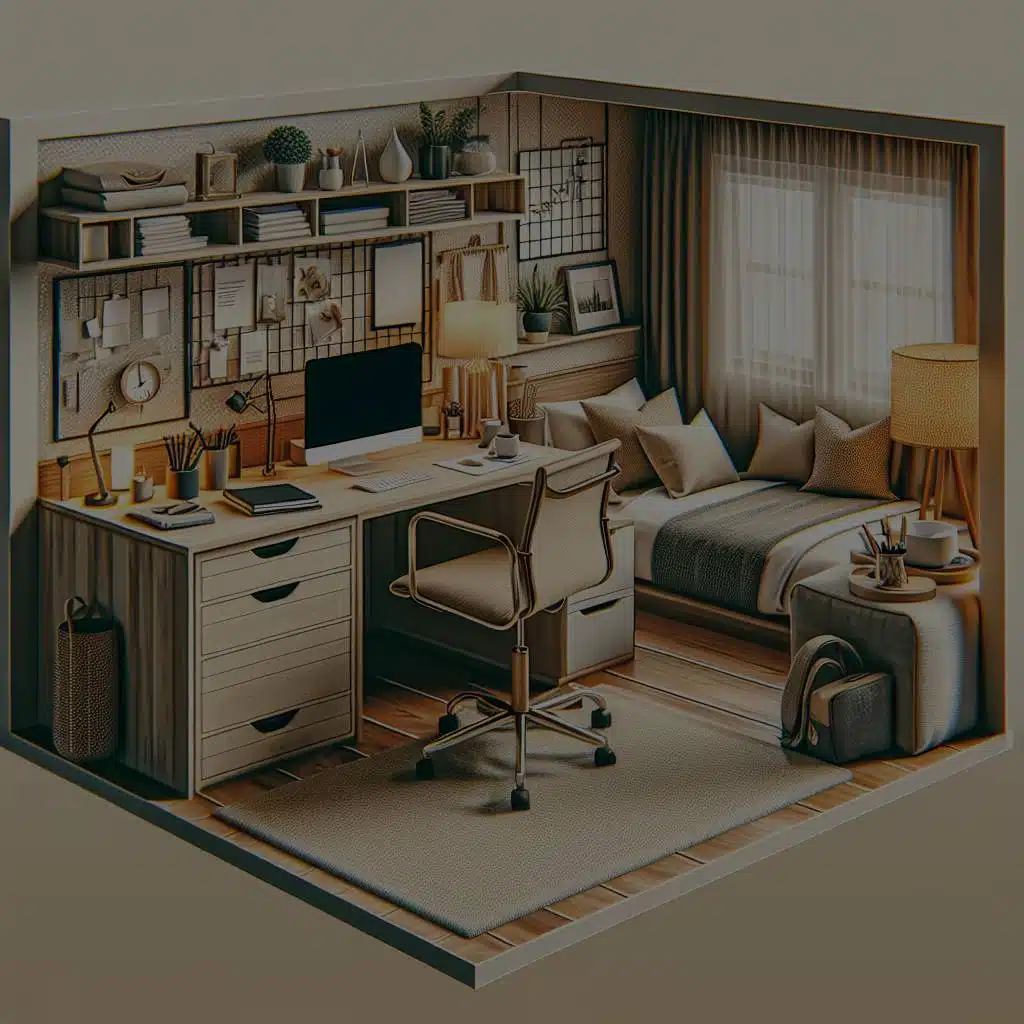 Un bureau dans une chambre d’amis, c’est avant tout un bureau à la maison. Il doit donc être un lieu agréable où vous vous sentez bien. L’aménagement intérieur doit par conséquent allier fonctionnalité et confort.